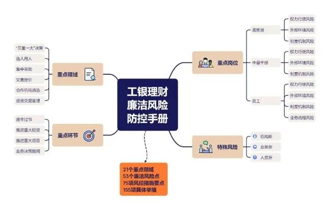 工銀理財面臨機(jī)構(gòu)新、業(yè)務(wù)新和人員新的三“新”風(fēng)險,既具有傳統(tǒng)金融機(jī)構(gòu)的普遍性廉潔風(fēng)險點,也面臨部分獨(dú)特風(fēng)險點。