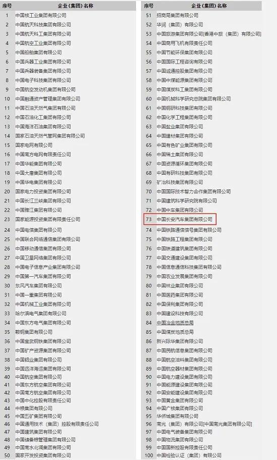 此外,中國經(jīng)濟網(wǎng)記者查詢到,目前國務(wù)院國資委網(wǎng)站的央企名錄已經(jīng)完成更新,其中,中國長安汽車集團已正式入列,序號為73位,這也是繼新增的中國雅江集團之后,由國務(wù)院國資委直接管理的第100家央企。