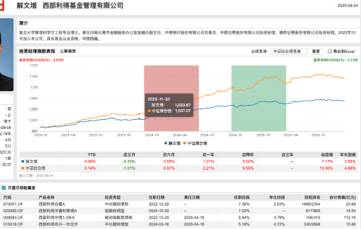 從基金業(yè)績(jī)情況來(lái)看,解文增自2022年12月29日起開始管理西部利得合贏,截至2025年9月24日,西部利得合贏A的任職回報(bào)為7.38%、年化回報(bào)為2.63%,在全市場(chǎng)排名處于末位20%。