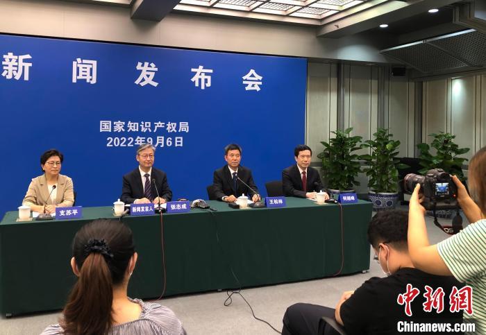國家知識(shí)產(chǎn)權(quán)局舉行9月例行新聞發(fā)布會(huì)會(huì)場。 中新社記者 孫自法 攝