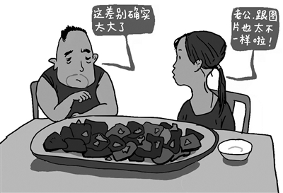 紅彤彤的烤饅頭夾龍蝦、焦褐色的炸肥腸、金燦燦的菠蘿飯……看到這些美食圖片,來自天津市河?xùn)|區(qū)的鄒楷不但沒有“打卡”的欲望,反而有點(diǎn)反胃,因?yàn)楦唢柡投鹊纳首屖澄锟瓷先ヌ倭恕:袜u楷一樣,對美食宣傳過度現(xiàn)象不理解的人不在少數(shù)。近日在多個(gè)美食推薦平臺上,有不少消費(fèi)者吐槽,其被宣傳圖片或者文案吸引,結(jié)果吃到的食物與圖文嚴(yán)重不符。(9月20日《法治日報(bào)》)