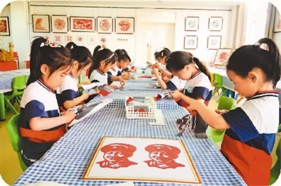 圖為學(xué)生們?cè)趯W(xué)習(xí)剪紙技藝。趙樹宴攝