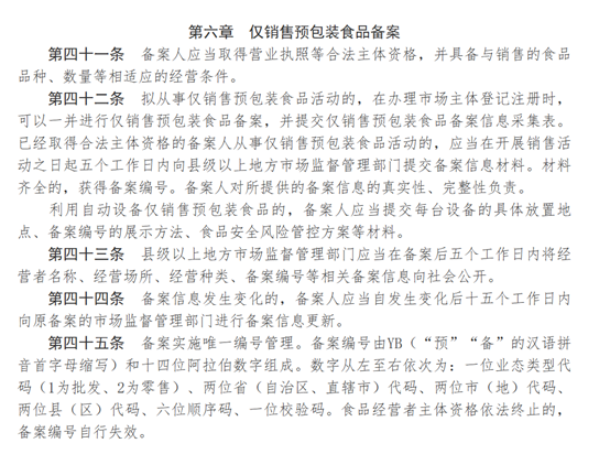 同時,各經(jīng)營主體也要格外注意,《辦法》中不僅對包括特殊食品在內(nèi)的預包裝食品規(guī)定了進行備案管理的條款,也明確了設定僅銷售預包裝食品違法行為法律責任。