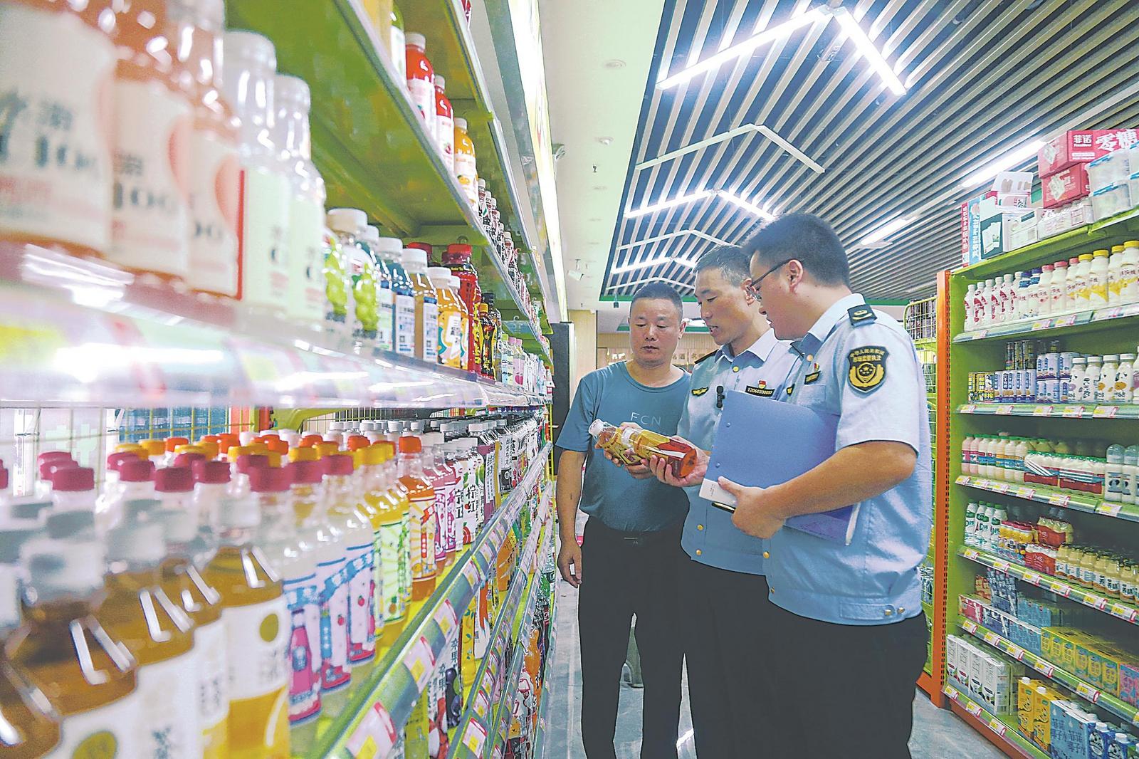 9月7日,阜陽市市場監(jiān)管部門針對校園內(nèi)外食堂、超市等相關(guān)場所進行食品安全檢查,確保學(xué)生“舌尖上的安全”。通訊員 龐 誠 攝