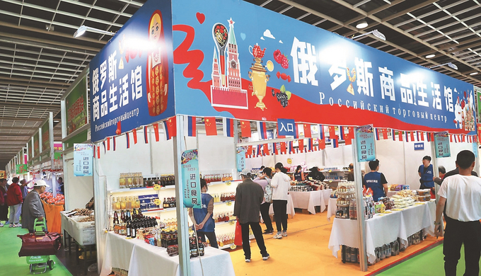 4月27日,第十八屆江蘇春季食品商品展覽會在南京國際展覽中心舉行。展會匯聚全國各地美食,涵蓋糧油、飲料、干果炒貨等,還開設了進口食品區(qū)。圖為市民在“俄羅斯商品生活館”選購。記者 宋寧 攝