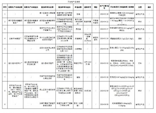 近期,江蘇省市場(chǎng)監(jiān)督管理局組織食品安全抽檢,抽取淀粉及淀粉制品、炒貨食品及堅(jiān)果制品、糕點(diǎn)、可可及焙烤咖啡產(chǎn)品、速凍食品、飲料、食用農(nóng)產(chǎn)品、水產(chǎn)制品、糧食加工品、餐飲食品、乳制品、肉制品、食用油、油脂及其制品、調(diào)味品和酒類(lèi)等15大類(lèi)食品707批次樣品,檢出其中淀粉及淀粉制品、調(diào)味品、糕點(diǎn)、酒類(lèi)、食用農(nóng)產(chǎn)品和飲料等6大類(lèi)食品17批次樣品不合格。