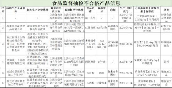 上海市市場監(jiān)管局介紹,上海市市場監(jiān)督管理局2024年第35期省級食品安全抽檢信息涉及8大類食品,包括:炒貨食品及堅果制品、淀粉及淀粉制品、罐頭、糧食加工品、食品添加劑、速凍食品、飲料和特殊膳食食品。抽檢樣品共計1351批次,其中合格1345批次、不合格6批次。詳見↓