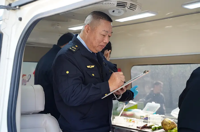 一旁的食品安全快速檢測(cè)車也備受關(guān)注,不少居民提著剛買的蔬菜前來檢測(cè),現(xiàn)場(chǎng)氣氛熱烈。