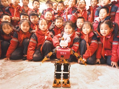 2020年12月18日,江西省撫州市資溪縣第三小學(xué)學(xué)生在觀看機(jī)器人表演?! 侵举F攝(人民視覺) |