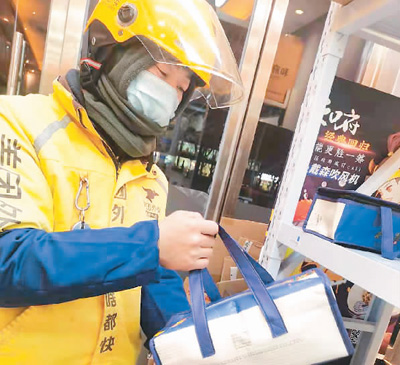 網(wǎng)約配送員游國棟正在取餐?! 〔稍L對(duì)象供圖 |