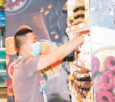 連鎖經(jīng)營管理師馮亞光在整理商品陳列。 盒馬鮮生供圖 |