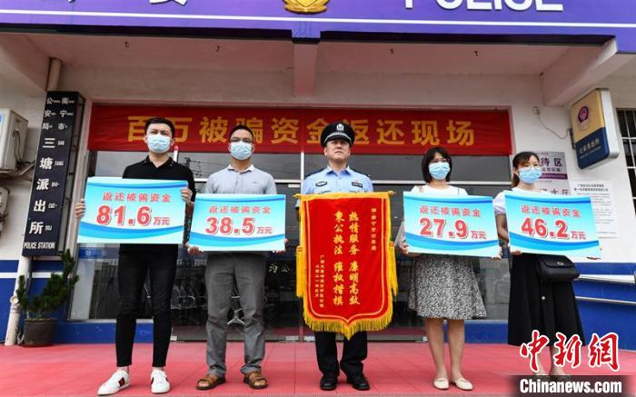 圖為警方向詐騙被害人返還了被騙資金 南寧警方供圖