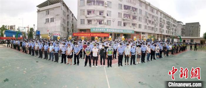 當(dāng)天,南寧市公安機(jī)關(guān)近3500名警力分頭趕赴24個(gè)抓捕點(diǎn)集中開展抓捕行動(dòng)。與此同時(shí),南寧市各級(jí)政法機(jī)關(guān)、市場監(jiān)管、金融監(jiān)管、通訊管理等部門2000多人也聯(lián)動(dòng)出擊,開展聯(lián)合整治。