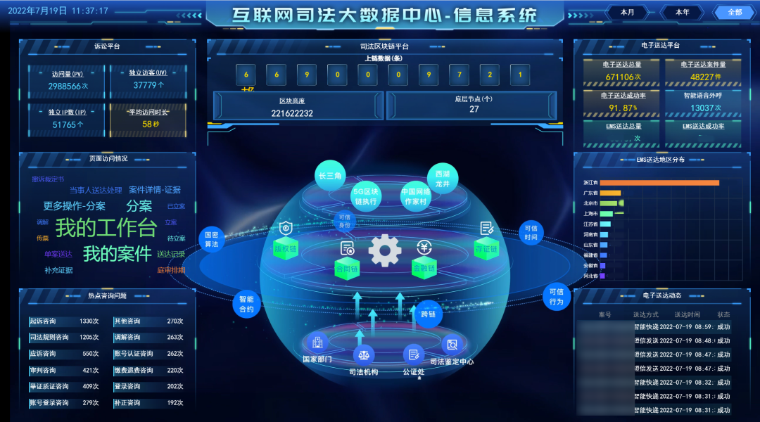 為深入貫徹浙江省委數(shù)字化改革決策部署,落實(shí)浙江高院“全域數(shù)字法院”改革任務(wù),杭州互聯(lián)網(wǎng)法院全面打造互聯(lián)網(wǎng)司法數(shù)智大腦,積極拓寬數(shù)字集成應(yīng)用場(chǎng)景,驅(qū)動(dòng)法院建設(shè)智慧化躍遷,通過多維度的交互展示、網(wǎng)絡(luò)空間治理專題分析報(bào)告、未來態(tài)勢(shì)感知和預(yù)警、開放大數(shù)據(jù)服務(wù)等多種方式的輸出能力為涉網(wǎng)司法智治及互聯(lián)網(wǎng)空間治理提供有力的智能支撐。