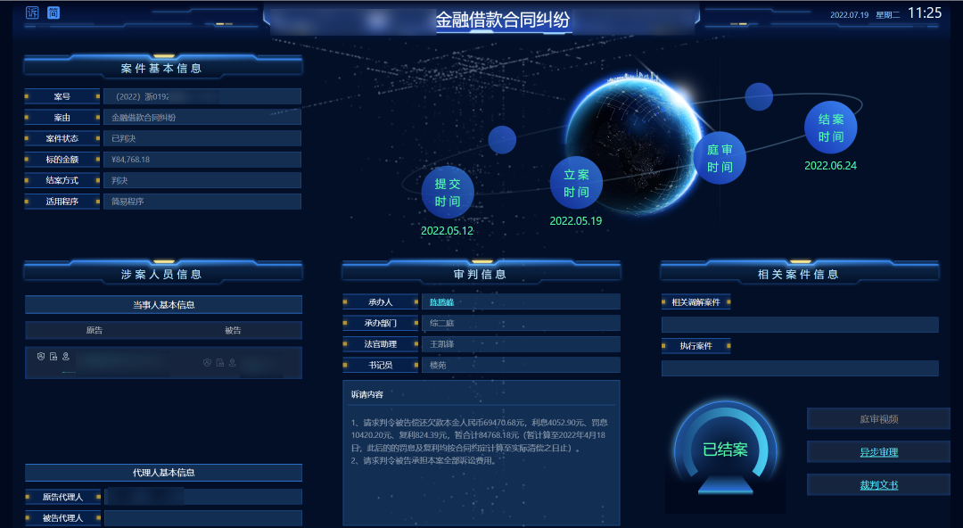 案件數(shù)字畫像整合全院的審判、執(zhí)行、人員、流程等數(shù)據(jù),對(duì)結(jié)案率、服判息訴率、改判發(fā)回瑕疵率等核心質(zhì)效指標(biāo)進(jìn)行監(jiān)控和預(yù)警,對(duì)在線庭審視頻實(shí)現(xiàn)一鍵點(diǎn)擊播放,對(duì)異步審理對(duì)話實(shí)現(xiàn)一鍵點(diǎn)擊瀏覽,對(duì)結(jié)案文書實(shí)現(xiàn)一鍵點(diǎn)擊查看,全面實(shí)現(xiàn)案件監(jiān)督管理全程網(wǎng)上運(yùn)行、全程留痕,智能監(jiān)測(cè)審判過程和結(jié)果偏離態(tài)勢(shì),推動(dòng)審判監(jiān)督管理由盯人盯案、層層審批,向全院、全員、全過程的實(shí)時(shí)動(dòng)態(tài)監(jiān)管轉(zhuǎn)變。