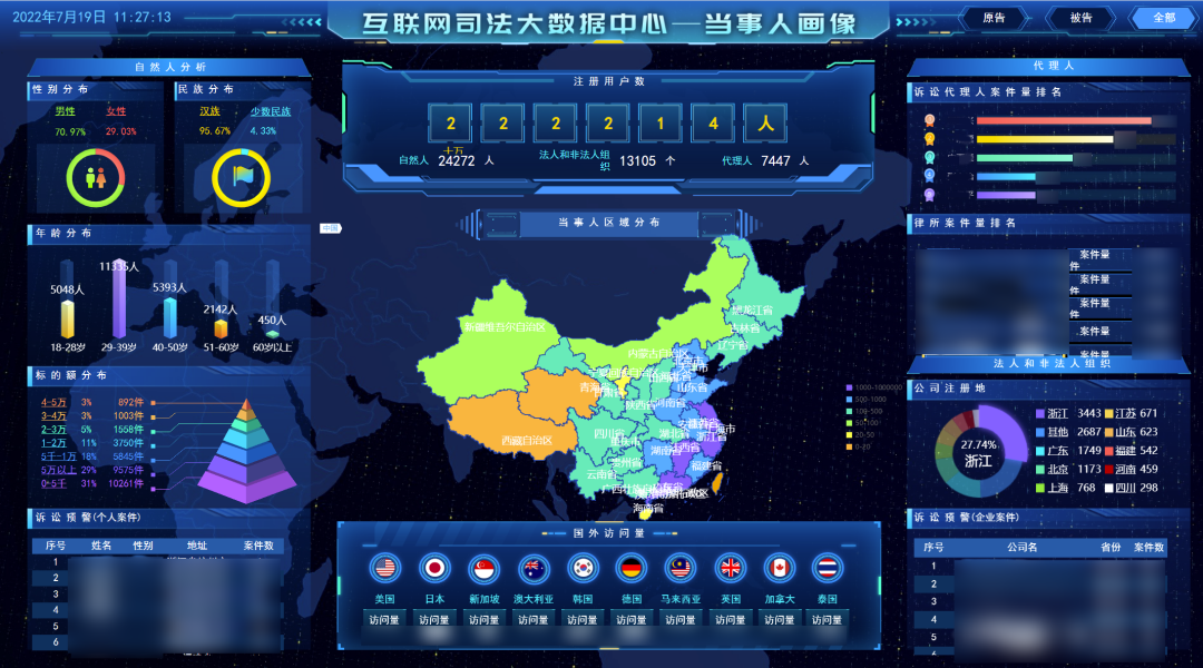 當(dāng)事人數(shù)字畫像從身份信息、案件構(gòu)成、訴訟能力、訴訟地位、行為特征等維度對(duì)當(dāng)事人進(jìn)行數(shù)字化重構(gòu),對(duì)當(dāng)事人訴訟習(xí)慣和常見問題進(jìn)行梳理和整合,對(duì)重點(diǎn)當(dāng)事人進(jìn)行識(shí)別和監(jiān)測(cè),并將其反饋到業(yè)務(wù)系統(tǒng)的升級(jí)和優(yōu)化之中,切實(shí)以當(dāng)事人需求為導(dǎo)向打造出“一看就懂、一用就會(huì)”的網(wǎng)上訴訟平臺(tái)。同時(shí)對(duì)涉訴較多的平臺(tái)、頭部企業(yè)等通過綜合案件主訴與被訴、案件類型、訴訟結(jié)果、訴請(qǐng)與抗辯內(nèi)容等全面分析其涉網(wǎng)糾紛情況和特征,幫助其完善合法合規(guī)、落實(shí)大政方針、打造良好營(yíng)商環(huán)境,進(jìn)一步強(qiáng)化互聯(lián)網(wǎng)空間治理。
