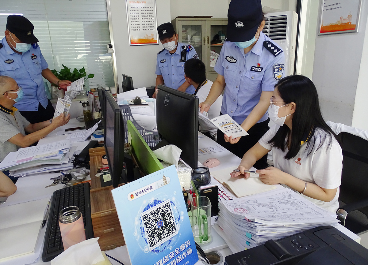 9月8日,國家網(wǎng)絡(luò)安全宣傳周期間,安徽省蕪湖市公安局鏡湖分局濱江派出所組織開展“網(wǎng)絡(luò)安全宣傳進(jìn)百家”活動(dòng)。民警走進(jìn)轄區(qū)企業(yè),向企業(yè)員工宣傳網(wǎng)絡(luò)安全知識(shí),提高大家安全防范意識(shí)。