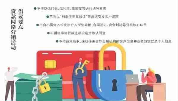 對(duì)于這樣一類夸大其詞的網(wǎng)絡(luò)貸款宣傳,也引起了監(jiān)管的注意?!冻h》稱,近年來(lái),大量金融機(jī)構(gòu)委托第三方互聯(lián)網(wǎng)平臺(tái)開展貸款網(wǎng)絡(luò)營(yíng)銷活動(dòng),提升了信貸服務(wù)的可得性和便利性,促進(jìn)了普惠金融的發(fā)展,但是在客戶適當(dāng)性管理、個(gè)人信息保護(hù)、信息披露等方面存在一些問(wèn)題。
