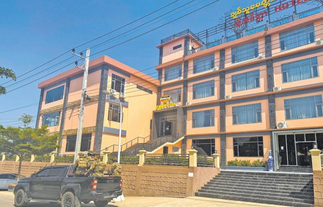 圖為當(dāng)?shù)貢r(shí)間2025年2月14日,緬甸東部妙瓦底鎮(zhèn),克倫邊防部隊(duì)(BGF)成員在水溝谷巡邏,打擊與詐騙中心相關(guān)的非法活動。 CFP供圖