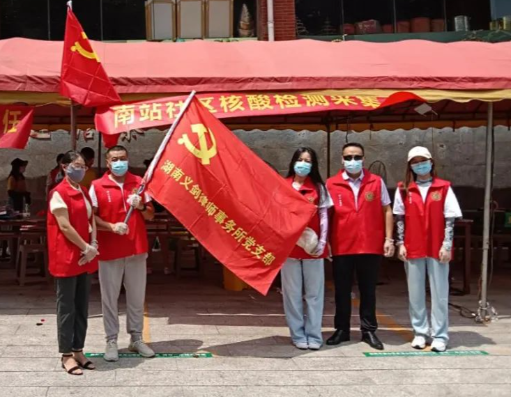 為堅決打贏新冠肺炎疫情防控阻擊戰(zhàn),8月6日,益陽市律師行業(yè)黨委組織市直所黨支部21名黨員律師組成“抗疫志愿者小分隊”,前往會龍山街道南站社區(qū)核酸采樣檢測點,開展全員核酸檢測志愿者服務(wù)活動。