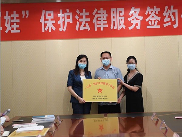 5月31日,湖北省司法廳與武漢軍事檢察院舉行“軍娃”保護(hù)法律服務(wù)簽約授牌儀式,湖北4家律師事務(wù)所和4所軍隊(duì)幼兒園現(xiàn)場“結(jié)對”,將免費(fèi)為幼兒園提供“一對一”法律服務(wù),共同做好軍人家庭未成年子女司法保護(hù)工作。