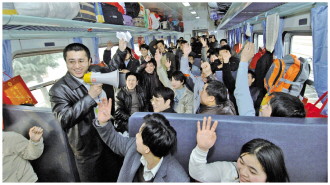圖為佟麗華在農(nóng)民工專列上普法。 受訪者供圖