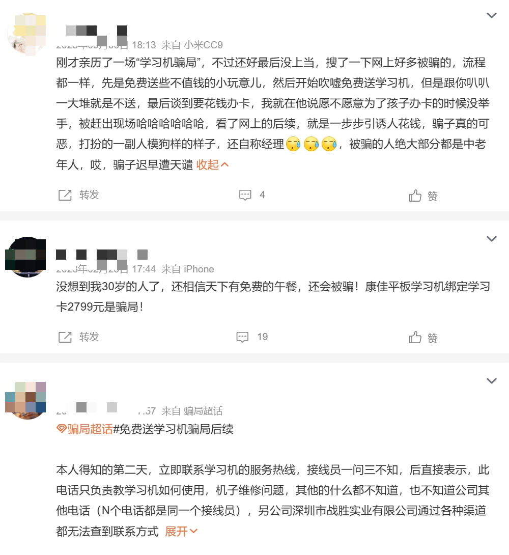 值得注意的是,這類(lèi)平板學(xué)習(xí)機(jī)消費(fèi)騙局不僅在線(xiàn)上進(jìn)行,在線(xiàn)下也十分猖獗。