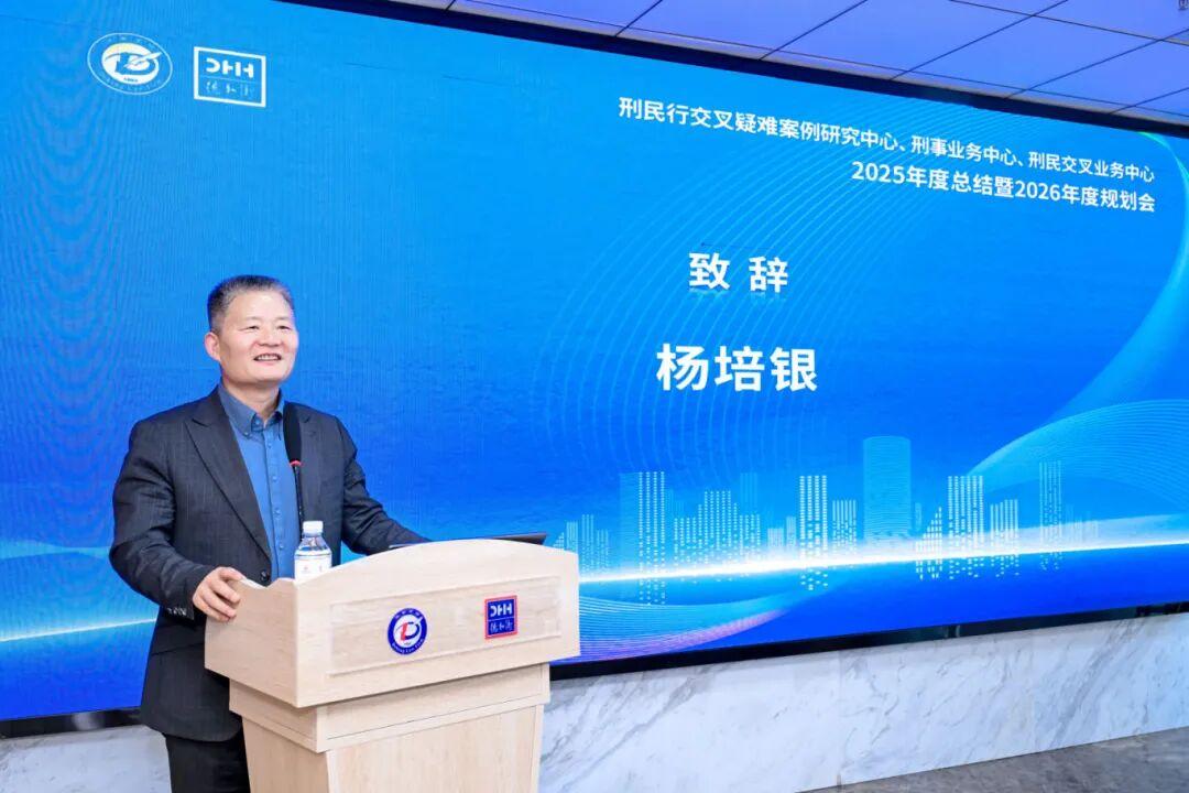 山東德衡律師事務(wù)所高級(jí)權(quán)益合伙人、執(zhí)行總裁、刑民行交叉疑難案例研究中心顧問(wèn)楊培銀主任在開幕致辭時(shí)對(duì)山東大區(qū)業(yè)務(wù)中心尤其是三大中心的活動(dòng)表示充分肯定,對(duì)中心在2025年取得的案件成果、團(tuán)隊(duì)建設(shè)及社會(huì)影響力提升等方面給予高度評(píng)價(jià),倡導(dǎo)關(guān)注跨領(lǐng)域協(xié)同研究在應(yīng)對(duì)復(fù)雜案件中的實(shí)踐價(jià)值。他希望三大中心2026年在復(fù)雜案件應(yīng)對(duì)與創(chuàng)新法律服務(wù)領(lǐng)域持續(xù)引領(lǐng)行業(yè)方向。