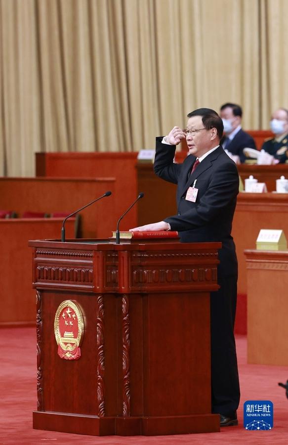 3月11日,十四屆全國人大一次會(huì)議在北京人民大會(huì)堂舉行第四次全體會(huì)議。應(yīng)勇當(dāng)選為中華人民共和國最高人民檢察院檢察長。這是應(yīng)勇進(jìn)行憲法宣誓。