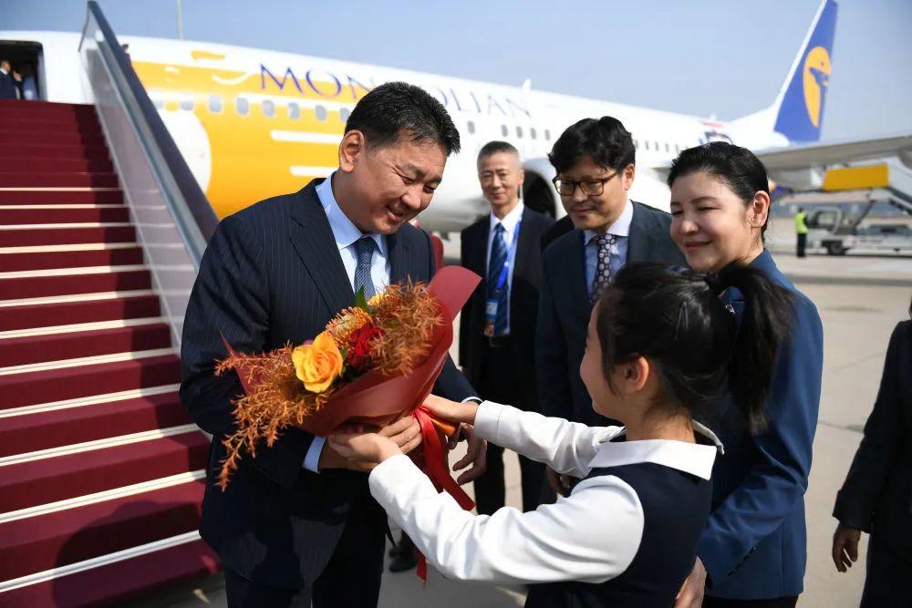 10月17日上午,來(lái)華出席第三屆“一帶一路”國(guó)際合作高峰論壇的蒙古國(guó)總統(tǒng)呼日勒蘇赫抵達(dá)北京。