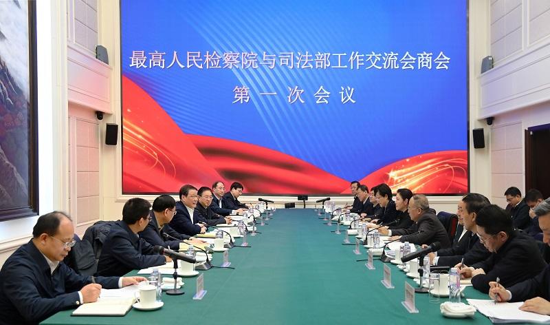 12月15日,最高人民檢察院、司法部召開工作交流會商會第一次會議。