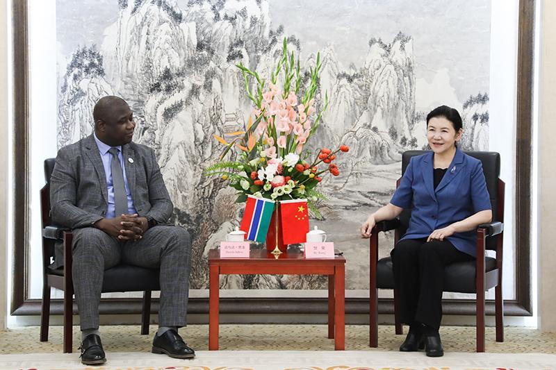 9月6日,司法部部長賀榮在京會見來華參加中非合作論壇北京峰會的岡比亞總檢察長兼司法部長達(dá)烏達(dá)·賈洛一行。攝影 滿博