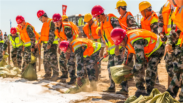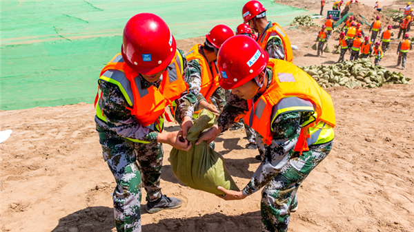隨著警報(bào)拉響,演練活動(dòng)正式開始。100名防汛隊(duì)員分成5個(gè)小組開展應(yīng)急搶險(xiǎn)、人員救治、疏導(dǎo)撤離等演練項(xiàng)目,各小組密切配合,按照既定路線將受災(zāi)村民有條不紊地轉(zhuǎn)移到安全地帶。演練還特別設(shè)定了大堤漫堤場景,現(xiàn)場緊急調(diào)度搶險(xiǎn)人員攜帶防汛器材和物資,進(jìn)行沙袋填裝、加固防護(hù),歷時(shí)半個(gè)小時(shí),演練項(xiàng)目全部按計(jì)劃完成,達(dá)到預(yù)期效果。
