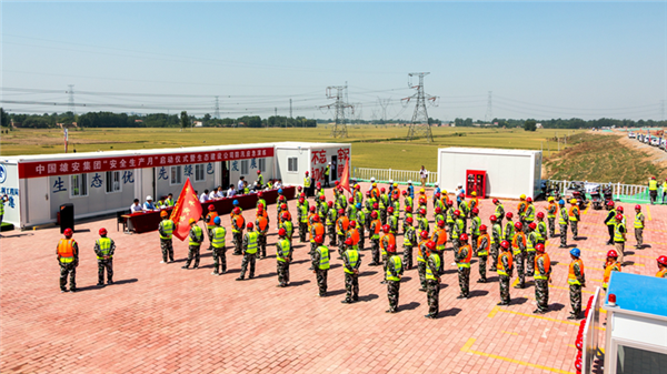 6月3日,雄安集團(tuán)在南拒馬河防洪治理工程指揮現(xiàn)場舉辦“安全生產(chǎn)月”啟動(dòng)儀式暨生態(tài)建設(shè)公司防汛應(yīng)急演練活動(dòng)。中國雄安官網(wǎng)記者馬夢迪 攝