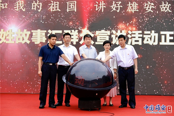 領(lǐng)導(dǎo)嘉賓上臺(tái)觸摸啟動(dòng)球,共同啟動(dòng)“我和我的祖國(guó)——講好雄安故事”365百姓故事匯群眾宣講活動(dòng)。中國(guó)雄安官網(wǎng)記者馬夢(mèng)迪 攝