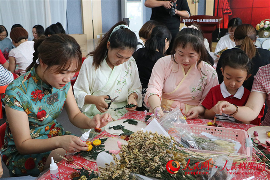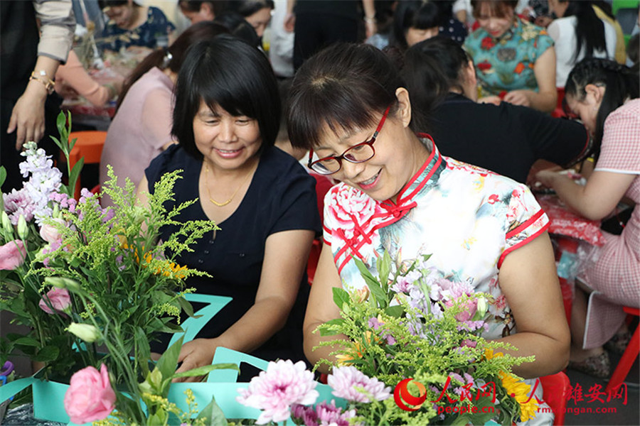 教師節(jié)當(dāng)天,北京市六一幼兒院雄安院區(qū)舉辦“花兒獻(xiàn)祖國,傳承經(jīng)典文化”主題活動(dòng),老師和孩子們一起用插花、制作團(tuán)扇等形式慶祝新中國成立70周年和第35個(gè)教師節(jié)。