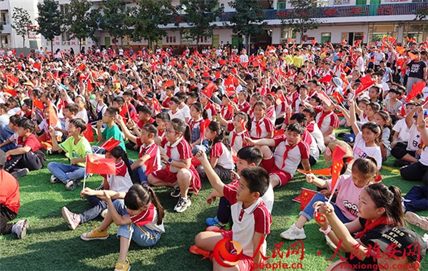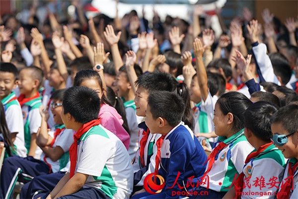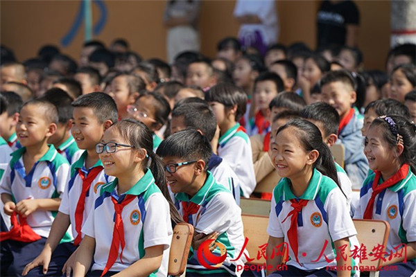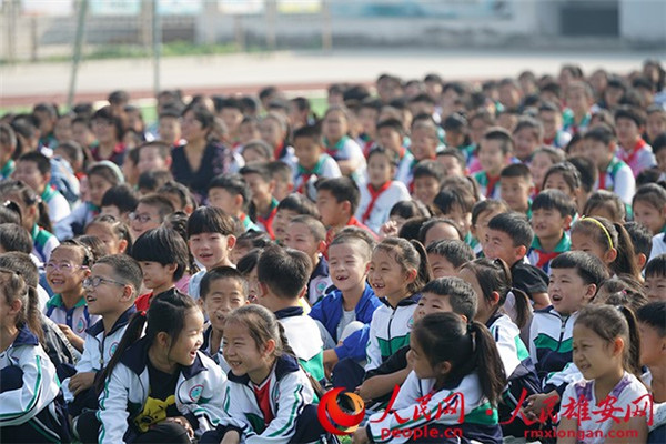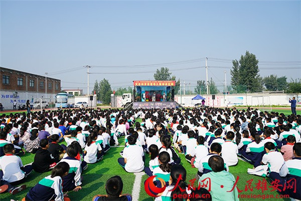 圖為安新縣第二小學的學生正在觀看演出。劉師豪 攝
