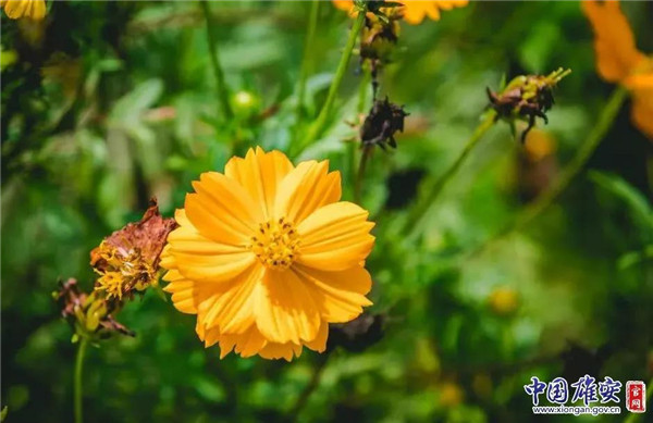 一朵硫華菊靜靜綻放在雄安市民服務(wù)中心。中國雄安官網(wǎng)記者馬夢迪 攝