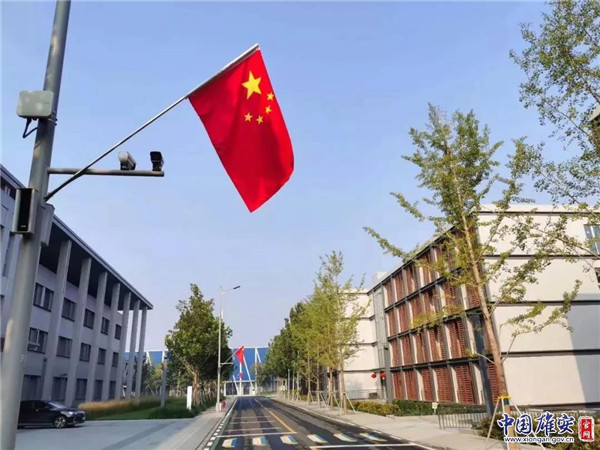 雄安市民服務(wù)中心道路兩側(cè),五星紅旗迎風(fēng)舒展。劉向陽 攝