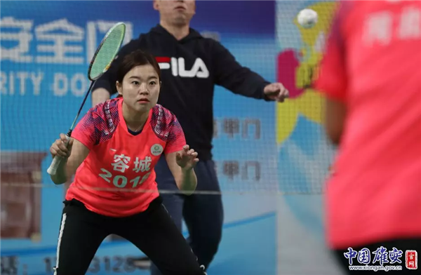 2018年容城縣迎新春羽毛球賽上,選手專注于比賽。中國雄安官網(wǎng)毛鶴然 攝