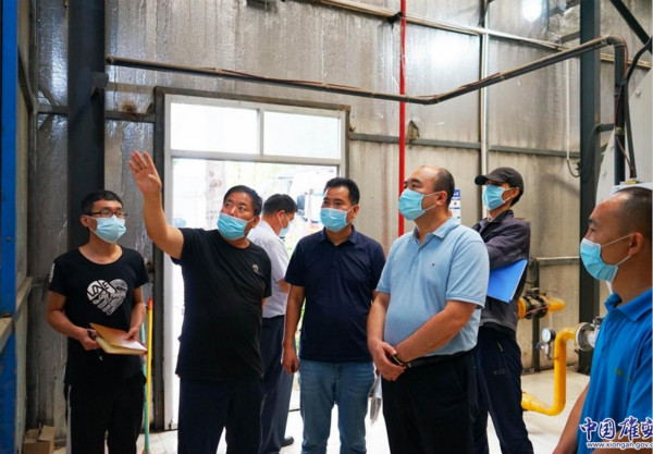 檢查組查看生產(chǎn)車間相關(guān)安全管理制度。雄安新區(qū)綜合執(zhí)法局供圖