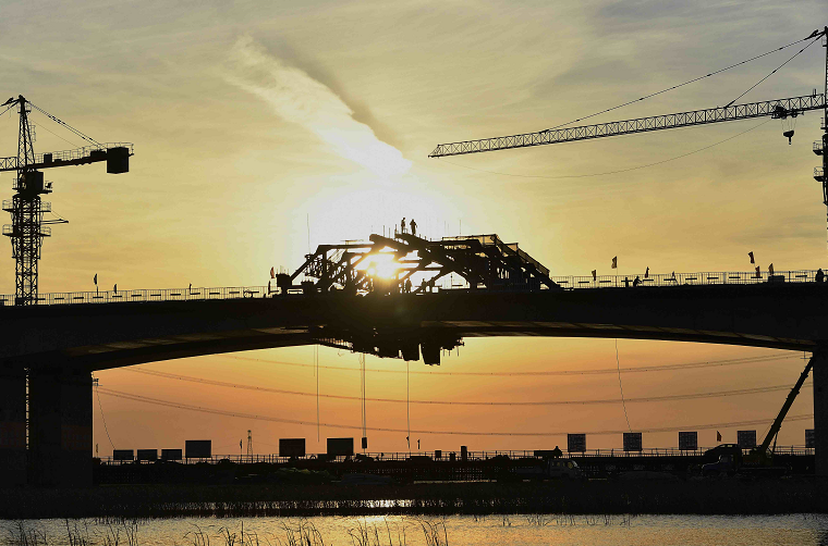 24日,由中鐵一局施工的京德高速公路全線最大跨度連續(xù)梁——文安洼1號(hào)特大橋跨趙王新河連續(xù)梁順利合龍。
