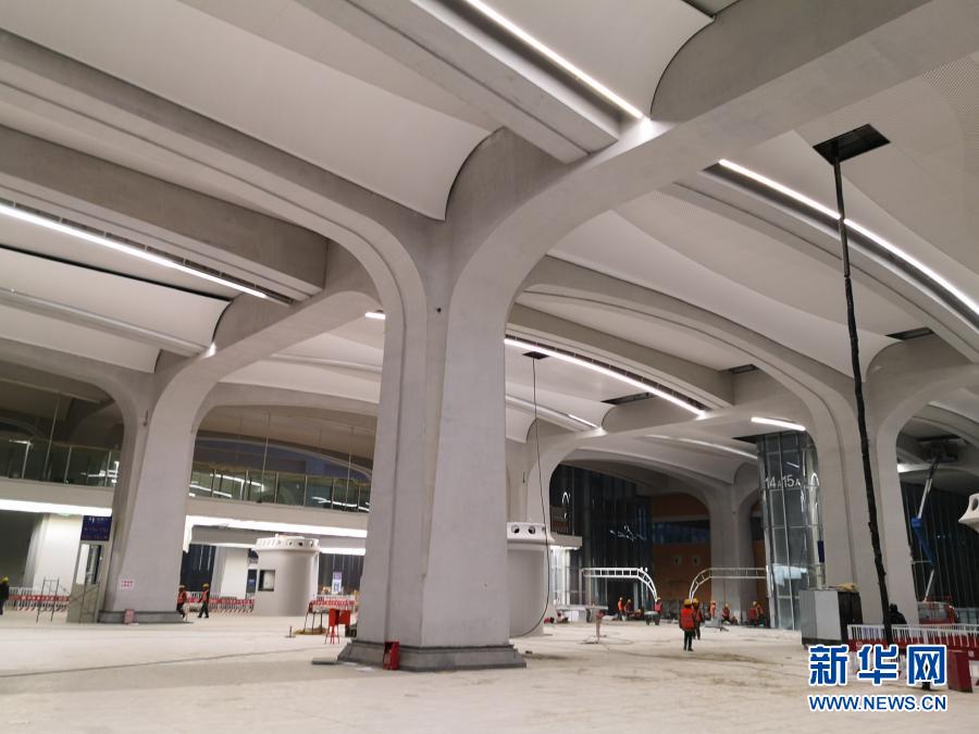 正在裝飾裝修的雄安站內(nèi),機(jī)器輕鳴、焊花閃爍,一根根高大的清水混凝土結(jié)構(gòu)梁柱,呈現(xiàn)出花開的形態(tài),工程技術(shù)人員形象地稱它們?yōu)椤伴_花柱”。