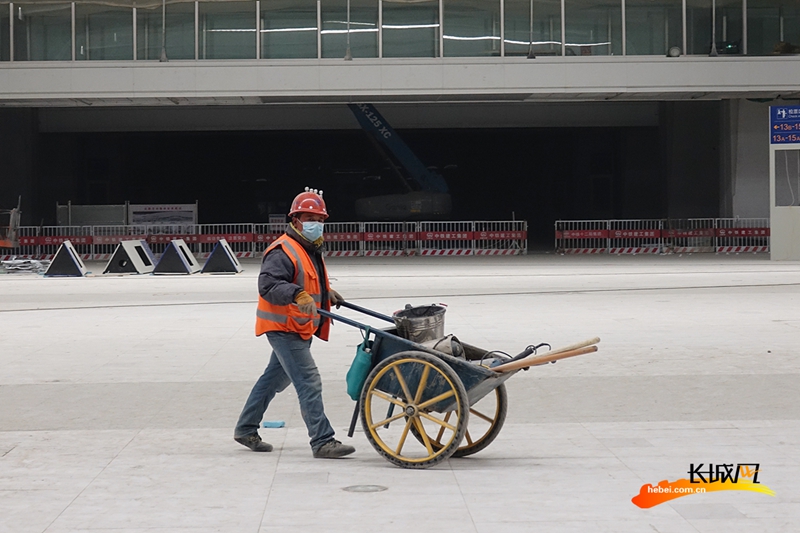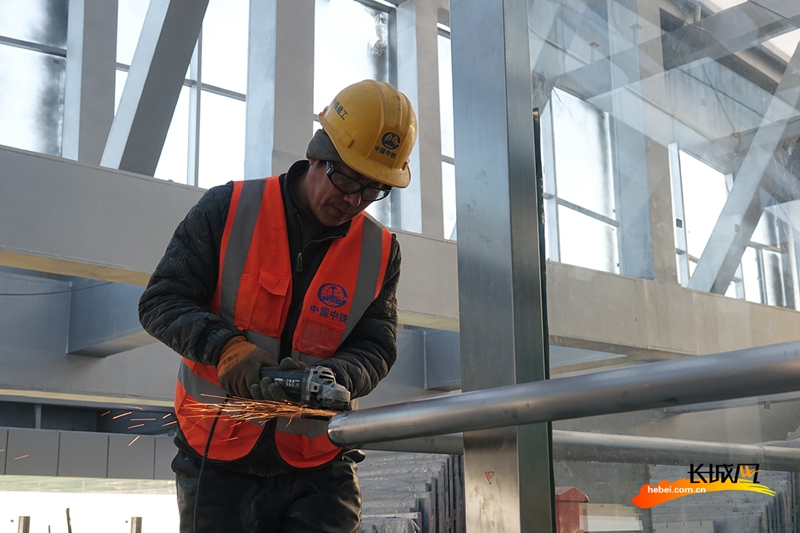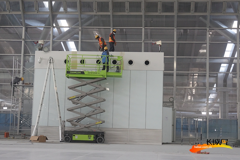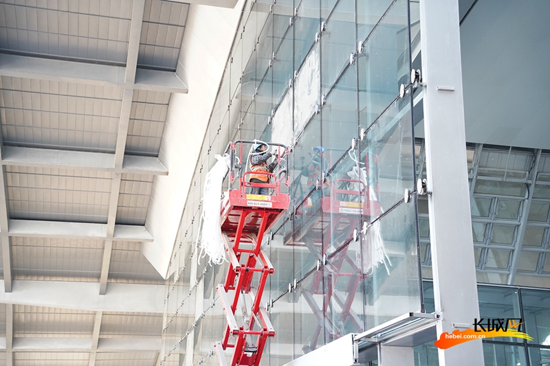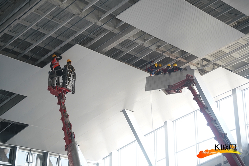 12月16日,雄安站站房內,吊頂、打磨、清理、裝扮……建設者們正在緊張地進行裝飾裝修工作,在雄安站開通運營最后的沖刺階段,留下最美的身影。(記者 胥文燕 王守一)