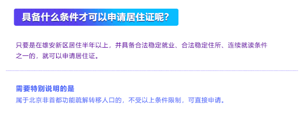 答:在雄安新區(qū)居住半年以上,并具備合法穩(wěn)定就業(yè)、合法穩(wěn)定住所、連續(xù)就讀條件之一的;屬于北京非首都功能疏解轉(zhuǎn)移人口的,不受以上條件限制,可直接申請。