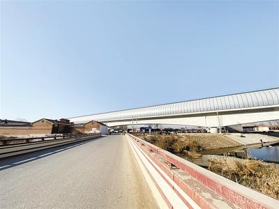 京雄城際鐵路上,橫跨霸州市北落店村的世界首例時速350公里的高速鐵路橋梁全封閉聲屏障。河北日報通訊員 盧達 攝
