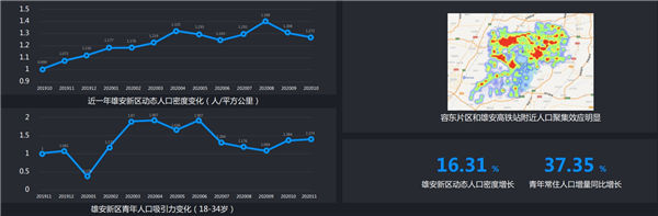 《報(bào)告》基于百度的平臺(tái)大數(shù)據(jù)和衛(wèi)星遙感數(shù)據(jù),通過(guò)人工智能分析技術(shù),較為全面客觀地對(duì)雄安新區(qū)近一年的發(fā)展變化進(jìn)行了量化分析和解讀,為公眾展現(xiàn)了雄安新區(qū)這座“未來(lái)之城”的最新面貌。