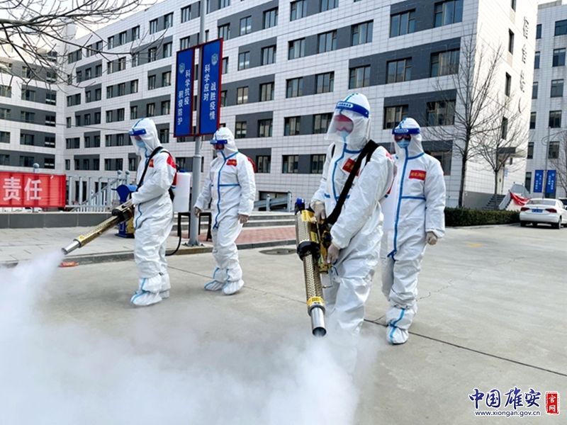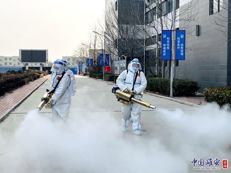 安新縣消防救援大隊隊員正在進(jìn)行消殺作業(yè)。中國雄安官網(wǎng)發(fā)