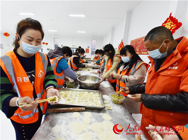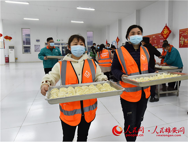 雄安新區(qū)容東片區(qū)B1組團(tuán)安置房項(xiàng)目留雄過(guò)年建設(shè)者包餃子。