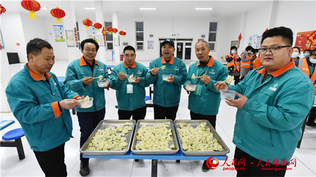 雄安新區(qū)容東片區(qū)B1組團(tuán)安置房項(xiàng)目留雄過(guò)年建設(shè)者吃餃子過(guò)大年。